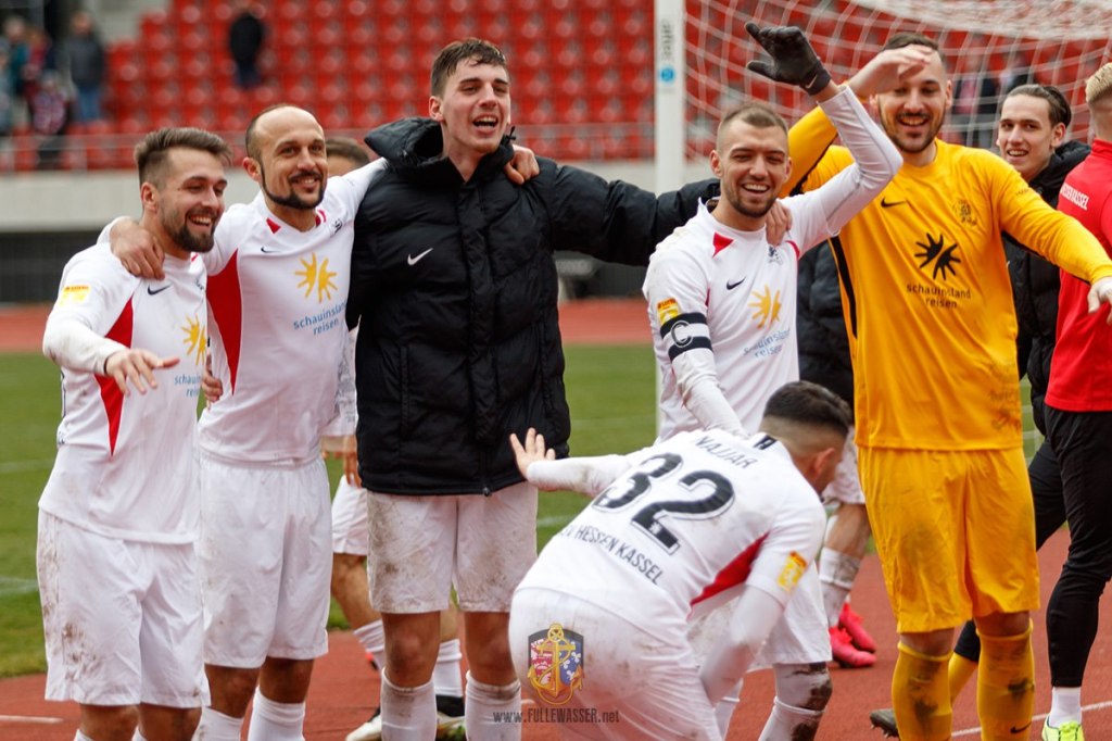 Für den KSV Hessen Kassel würde dies den Aufstieg am Grünen Tisch bedeuten. Sicher kein Wunschszenario, denn in der Isolation zu feiern kommt nie im Leben einer rot-weißen Aufstiegsfeier nahe. Aber die Jungs haben gezeigt, dass sie es verdient haben – der Punkteschnitt ist herausragend. Die Statuten sehen vier Aufsteiger vor. Vielen Hessenligisten bliebe durch den Löwen-Aufstieg ein Ausnahmespieltag erspart ohne trinkfeste und hungernde Vandalen aus Kassel. Bitte, Danke!